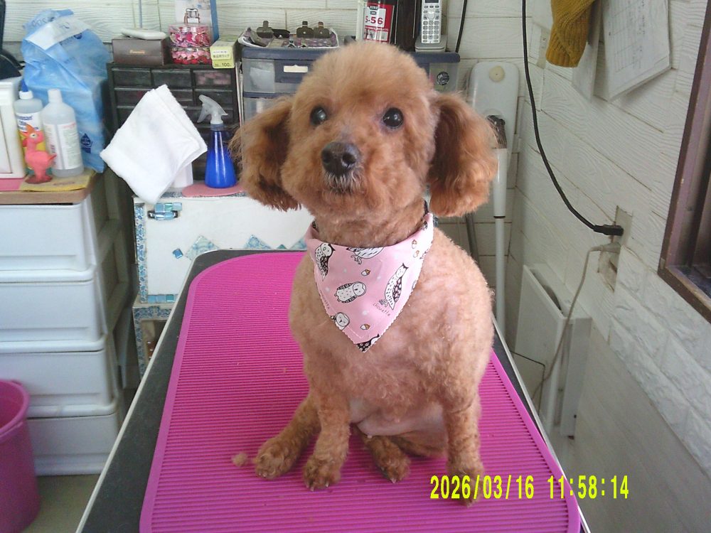 皮膚の状態がまだ良くなくなるべく短めカットのさくらちゃん
