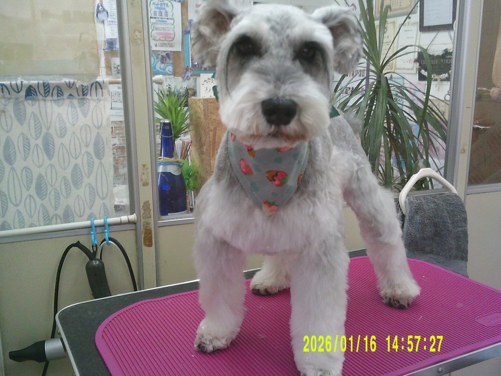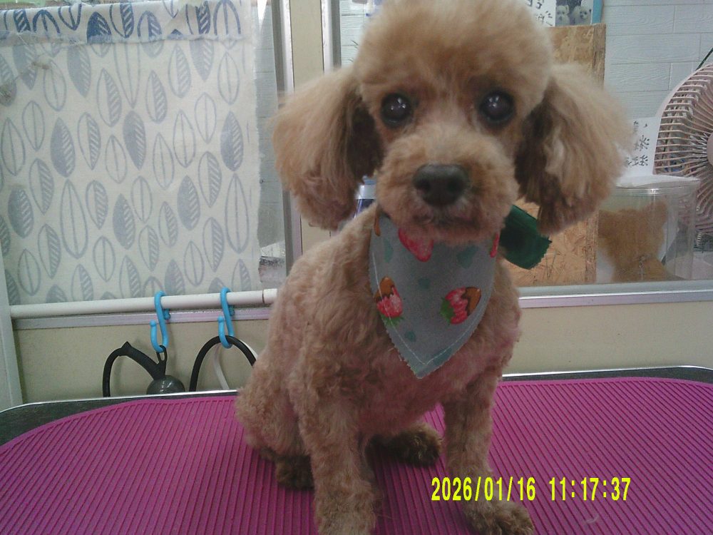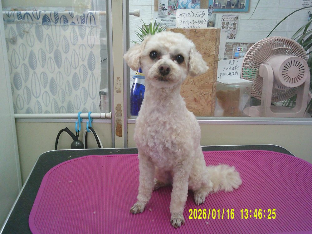 お耳もバリカンを入れてさっぱりのプードル 麦太郎くん