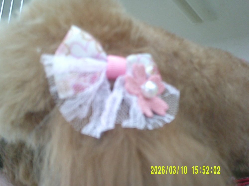 甘えん坊のムムちゃん桜のおリボンが似合ってます。これでは見えませんね!!